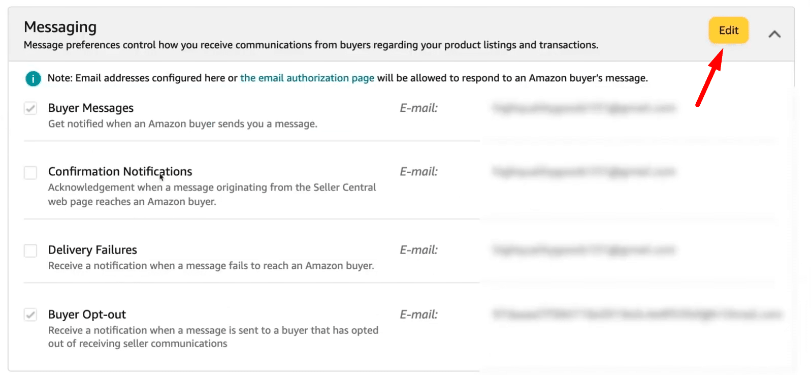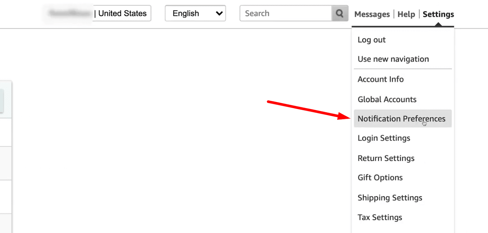Trong Seller Central, tìm và chọn phần Notification Preferences (Tùy chọn thông báo).